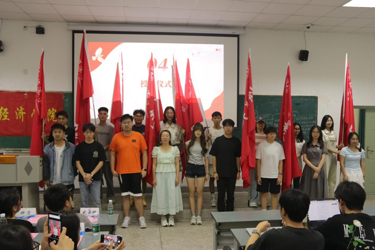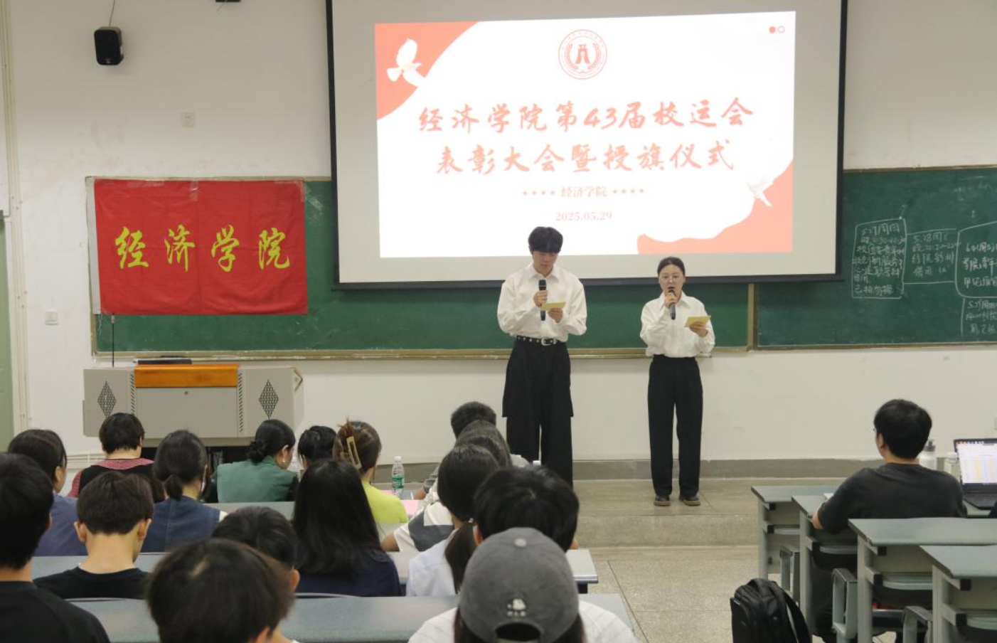 紧接着,大会迎来了庄严而富有传承意义的授旗仪式。现任运动队队长郑重地将象征98858vip威尼斯下载体育精神与荣誉的队旗交接到下任队长手中。旗帜的交接,不仅传递了责任与使命,更象征着经院体育精神的薪火相传。