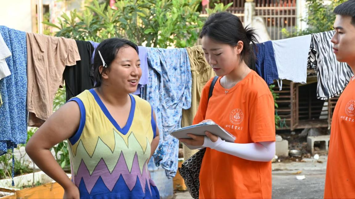 (图为“农链新生”调研团在走访调研农户。唐玮鸿 摄)