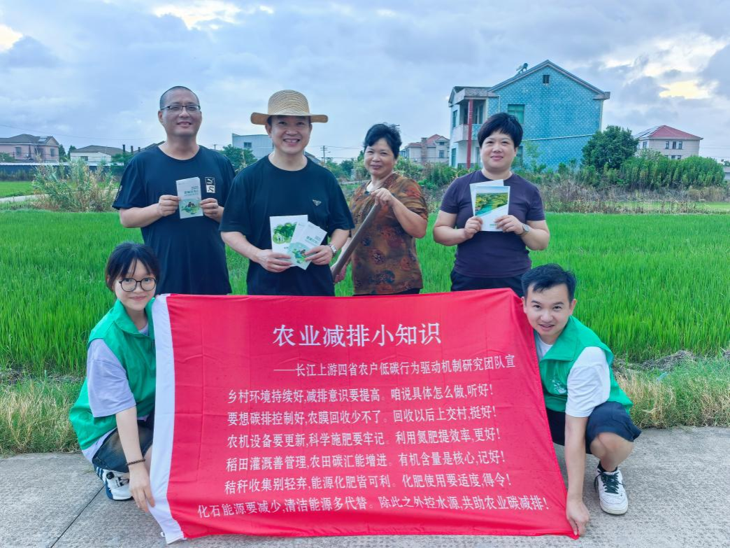 “驱碳绿农”社会实践团创新“3+1+N”模式,五年间足迹遍布40余村。今年,在温江苗圃基地,成员现场演示有机肥料施用技术,带动百亩土地减碳千余吨。面对农户“技术难推广”的痛点,团队发放100余本图解手册,将“手机银行转账步骤”与“秸秆还田操作”并列呈现,让绿色技术“看得懂、学得会”。